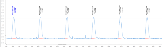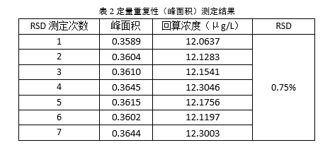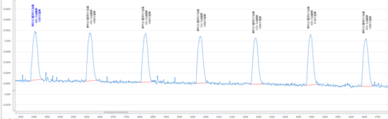 按照《HJ998-2018 土壤和沉積物揮發酚的測定4-氨基安替比林分光光度法》進行試樣的提取,定量重復性(峰面積)測定結果見表2,重復性的分析峰形圖見圖3。