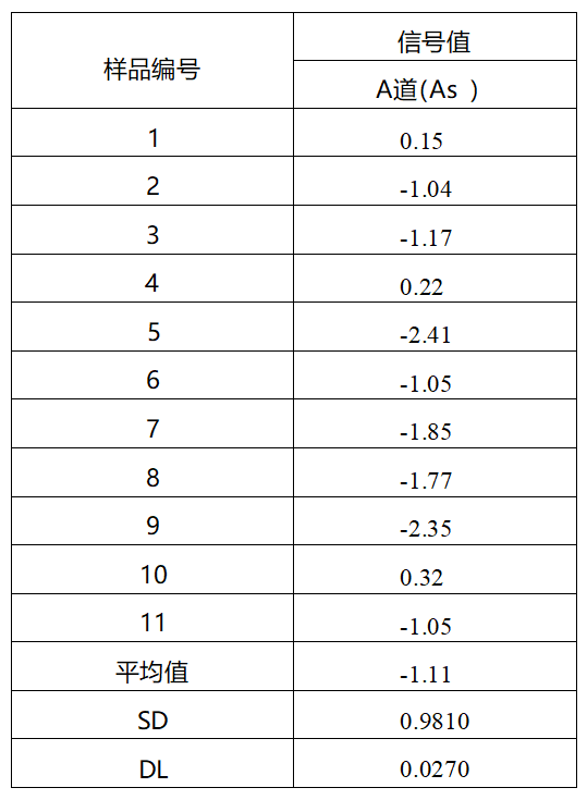 連續測量 11 次標準空白溶液,計算儀器檢出限見表4。
