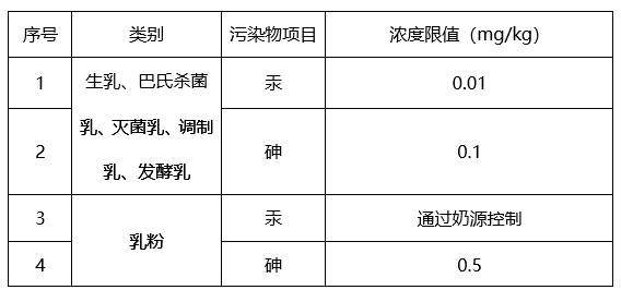對于乳制品中的四類產品:滅菌乳、發酵乳、生乳、乳粉,分別依據《GB25190-2010滅菌乳》、《GB19302-2010發酵乳》、《GB19301-2010生乳》、《GB19644-2010乳粉》對原料奶、奶倉奶、成品奶進行檢測。污染物限量執行《食品安全國家標準 食品中污染物限量》 (GB2762-2017) 的規定,檢測方法參考《食品安全國家標準 食品中總砷及無機砷的測定》(GB 5009.11-2014)和《食品安全國家標準 食品中總汞及有機汞的測定》(GB 5009.17-2014)。