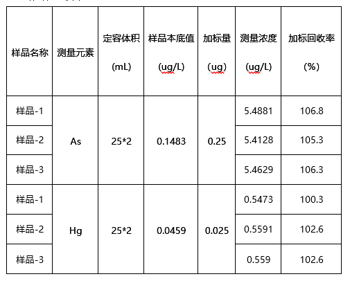 取固體試樣或液體試樣0.2-2.0g(或mL)(精確至0.001g)于消解罐中,加入硝酸、過氧化氫,振搖混合均勻,在微波消解儀中進行消解,消解完畢后冷卻至室溫,待冷卻后用5%鹽酸將消解液轉入25 mL容量瓶中。分取預還原結束后上機檢測。