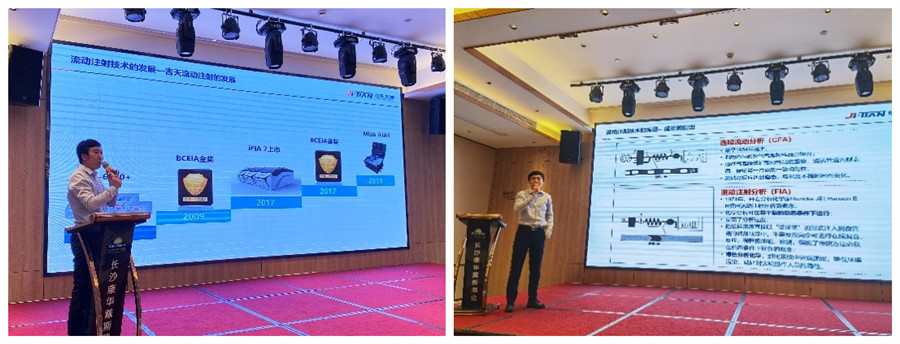 同時吉天儀器產品經理趙昕在培訓班上做關于水質中《流動注射在環境監測中應用》的報告,詳細介紹了流動注射技術的發展以及在環境監測中的應用和技術的優勢,并和在場的老師分享了相關的應用案例。