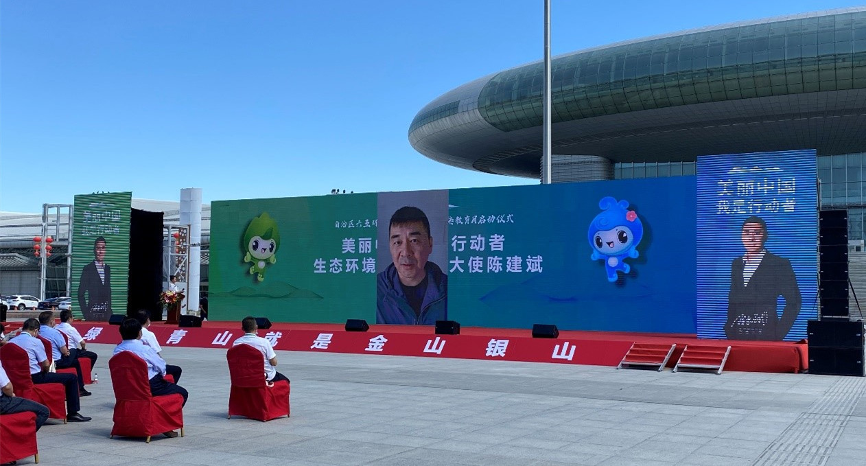 儀式現(xiàn)場連線新疆生態(tài)環(huán)境推廣大使陳建斌先生,現(xiàn)場呼吁大家保護(hù)生態(tài)環(huán)境,共同踐行綠色低碳的環(huán)保理念,共同保護(hù)我們的美好家園。